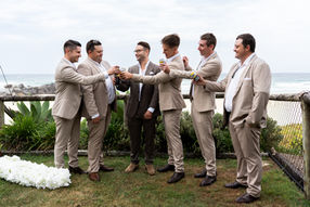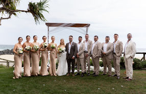 A backyard ceremony at their Gold Coast Airbnb, waves in the distance and love front and centre.